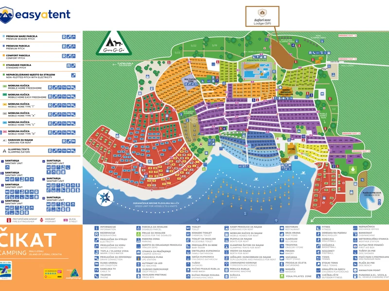 Al campeggio Cikat puoi scegliere tra mare e piscina. La struttura è situata lungo la costa e vanta un accesso al mare da cui decidere se fare una passeggiata in spiaggia o tuffarsi nelle acque cristalline dell'Adriatico. In spiaggia trovi il bar, mentre all'interno c'è un Aquapark con due piscine d'acqua dolce e sentieri di acqua salata. Sono più di 6000 metri quadrati, e il parco è circondato dai pini.