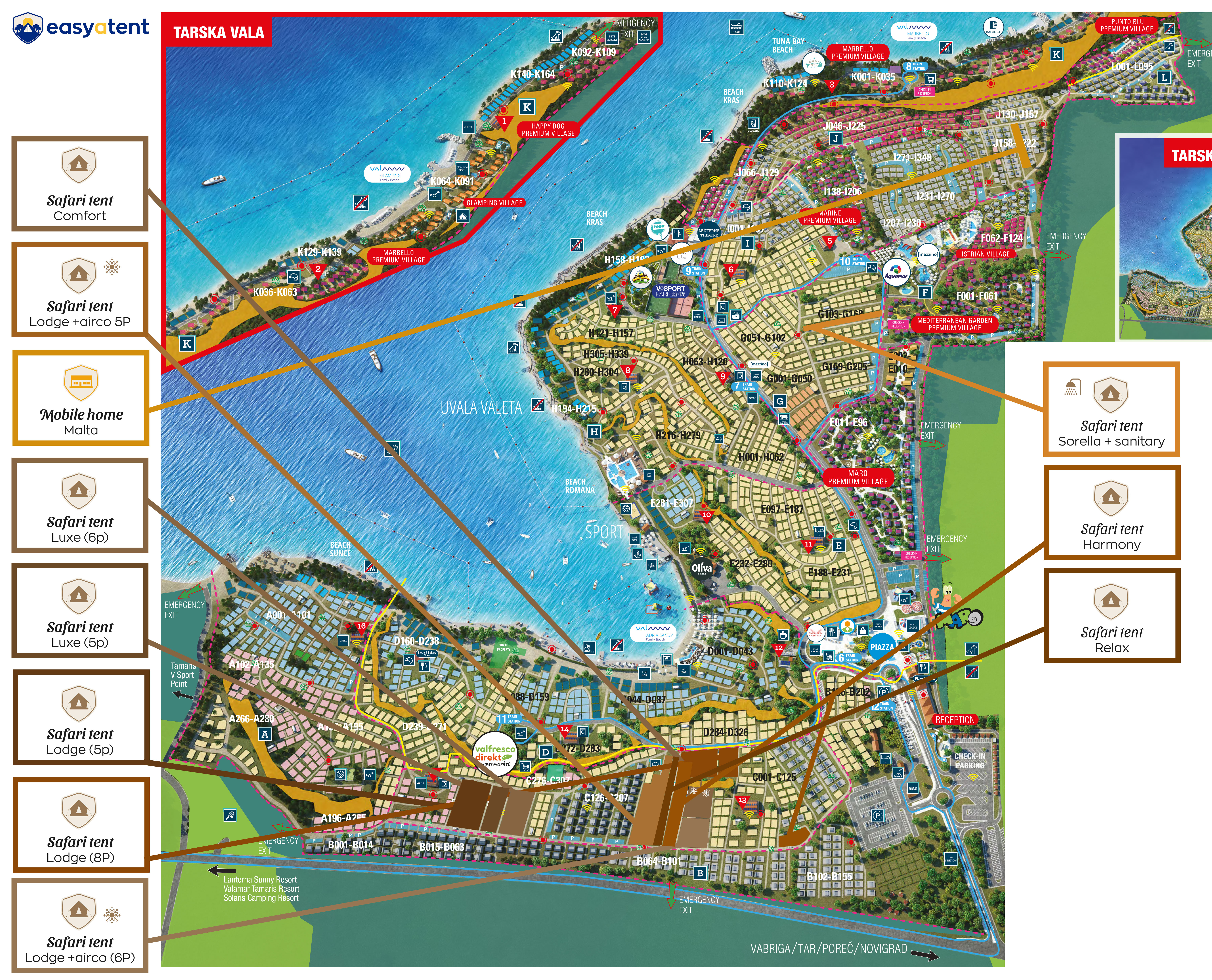 Il Valamar Camping Lanterna si estende per circa 3 km sulla splendida costa occidentale dell'Istria. Il complesso è fornito di lussuose strutture per il divertimento e il relax di tutta la famiglia. Offre inoltre l'accesso diretto alla spiaggia attrezzata di Crnika.