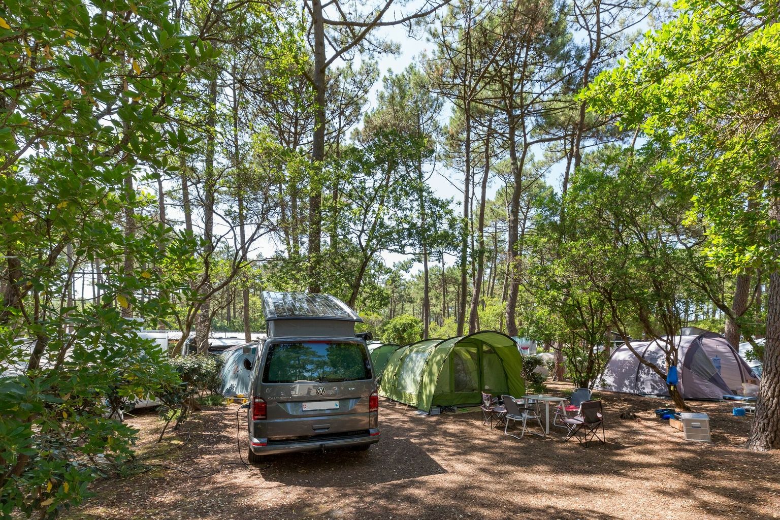 L'atmosfera del Campeggio Le Truc Vert è rilassata, naturale e meravigliosamente informale, tutta dedicata alla semplicità e all’aria aperta, che lo rendono davvero speciale. Gli alti pini regalano ombra fresca, mantenendo il campeggio confortevole anche nelle giornate più calde, mentre tra sabbia, foresta e il canto degli uccelli si vive l’esperienza autentica del campeggio. A disposizione degli ospiti ci sono un piccolo negozio e un ristorante che propone piatti locali, ma soprattutto tanta pace e tranquillità per godersi ogni momento. La sera, molti si ritrovano sotto gli alberi con un bicchiere di vino, mentre il sole lentamente si immerge nel mare: un vero paradiso per chi cerca relax.