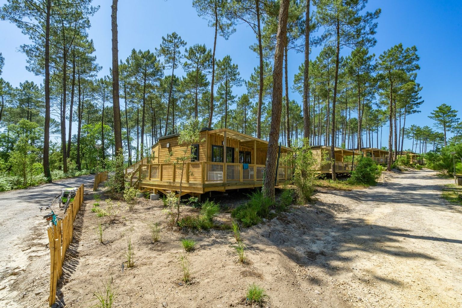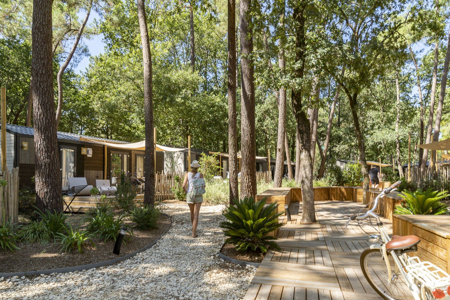 Quanto è tranquillo il campeggio senza auto Soustons Village, vicino a Soustons, dove i bambini possono tranquillamente andare al parco giochi da soli. Il grande parco acquatico tra i pini è un luogo ideale per le famiglie per rilassarsi per ore. Se si ascolta attentamente, si può sentire il mormorio dell'oceano.