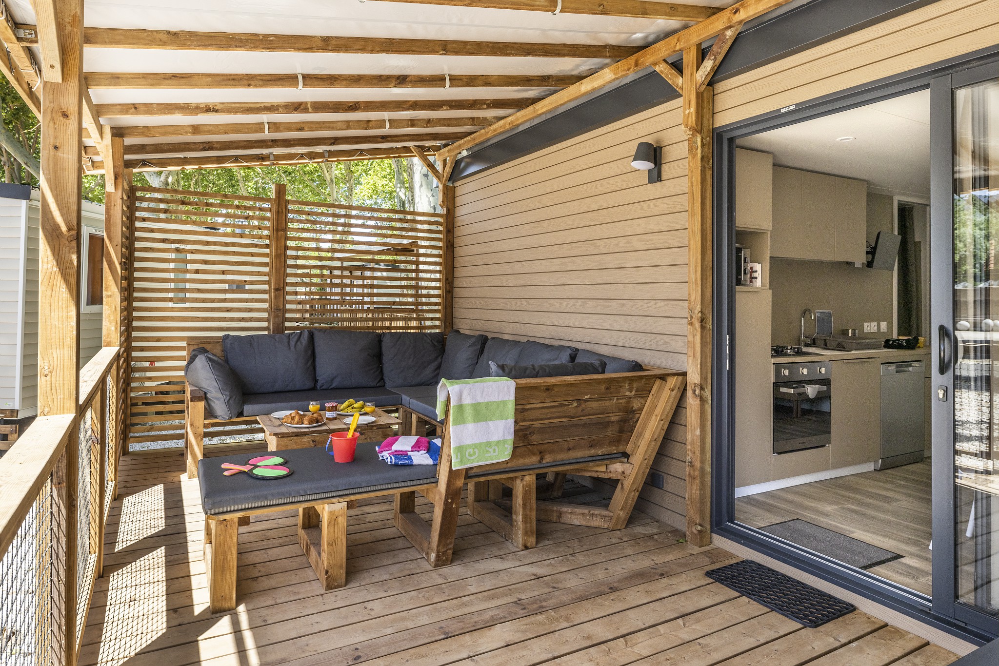 Essendo il campeggio situato nel centro di Argel, è possibile usufruire di tutte le strutture esterne al campeggio, tra cui un supermercato, negozi di souvenir e diversi ristoranti. Ogni giorno è possibile acquistare pane e croissant presso il panificio del campeggio e sorseggiare un drink al Buddha bar. Durante l'alta stagione viene organizzata un'animazione per grandi e piccini. La sera vengono organizzati diversi eventi e per te c'è un bus navetta per la discoteca che si trova appena fuori dal campeggio! Con l'uso del braccialetto, puoi utilizzare diverse attrezzature sportive e di gioco.