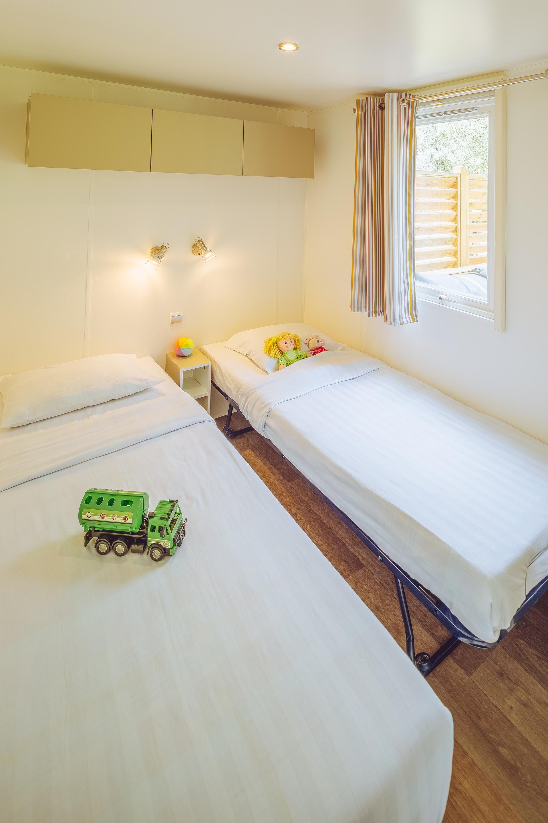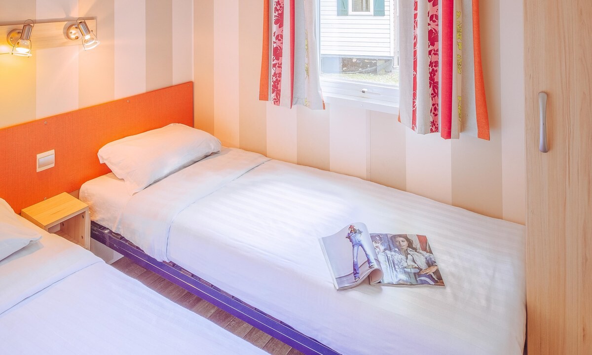 I bambini si divertiranno un mondo nel complesso di piscine del campeggio, con 4 vasche, 2 scivoli, un solarium e un'area giochi d'acqua riscaldata. Anche la piscina interna riscaldata è ideale! Ci sono anche due piscine per bambini e diversi grandi scivoli per i più piccoli. Intorno alle piscine sono disponibili sedie a sdraio. Per accedere alle piscine del campeggio è necessario indossare un braccialetto di sicurezza. Questo braccialetto ti verrà consegnato all'arrivo per tutta la giornata. Settimanalmente vengono organizzate animazioni in piscina, come l'aquagym e la baby gym. Oltre alle magnifiche piscine, puoi goderti il mare, a 200 metri dal campeggio. Sulla spiaggia è possibile noleggiare lettini e attrezzature per gli sport acquatici, come tavole da windsurf, canoe e barche.