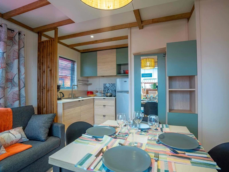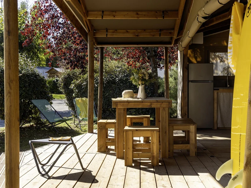 Anche per te non mancano le occasioni per rilassarti e muoverti. Puoi scegliere una lezione di pilates all’aria aperta, una passeggiata lungo la spiaggia o una partita a bocce in compagnia. Nel cuore del campeggio ti aspetta il bar, perfetto per un caffè o un aperitivo in un’atmosfera piacevole. Se hai voglia di qualcosa di veloce, lo snack bar propone piatti da asporto come patatine, pizza, cozze e pollo. Se invece preferisci cucinare, trovi barbecue e plancha in comune a tua disposizione. E naturalmente, non manca un negozio con pane fresco e generi alimentari per ogni necessità.