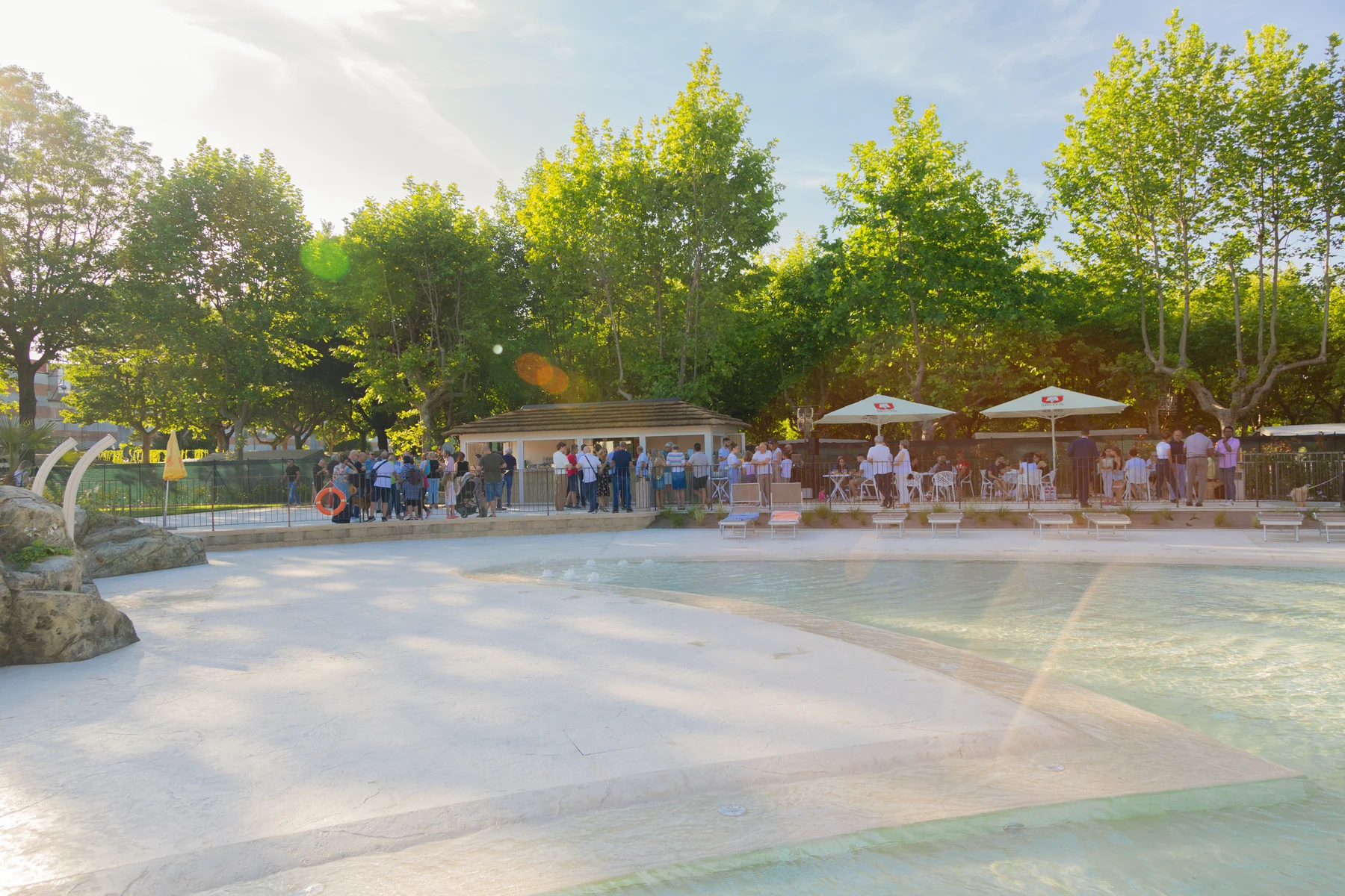 Nel camping sono presenti due piscine, una riservata agli adulti e l'altra, di profondità minima, dedicata ai bambini e dotata di scivoli e giochi. Nell'area sono inoltre presenti spazi per distendersi al sole sui lettini, così come un bar. Chi invece desidera immergersi nelle acque del lago, può accedere direttamente alla spiaggia privata, dove è presente un chiosco bar e dove è possibile noleggiare sdraio e ombrellone.