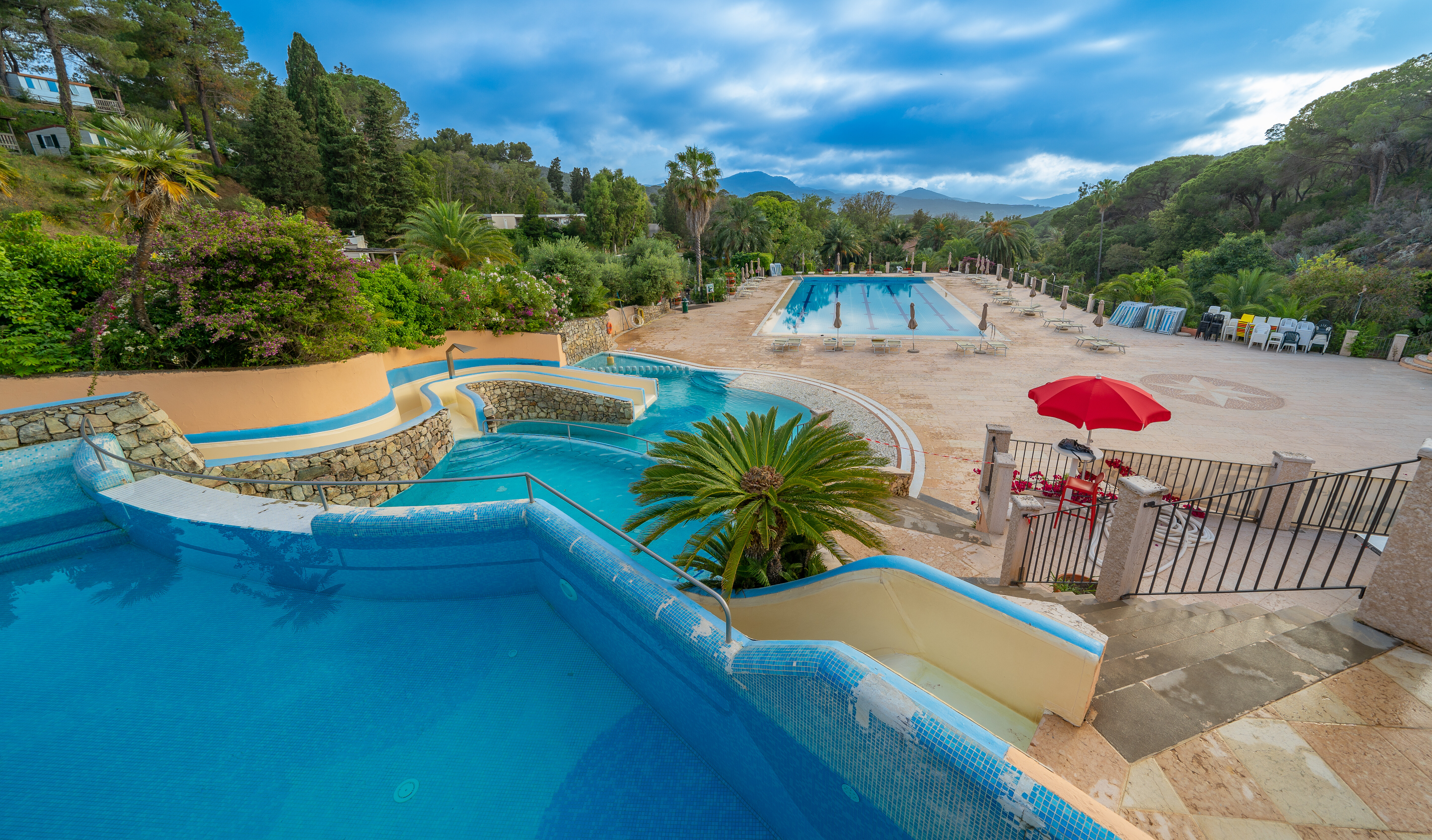 - Piscina ludica con scivolo e cascata