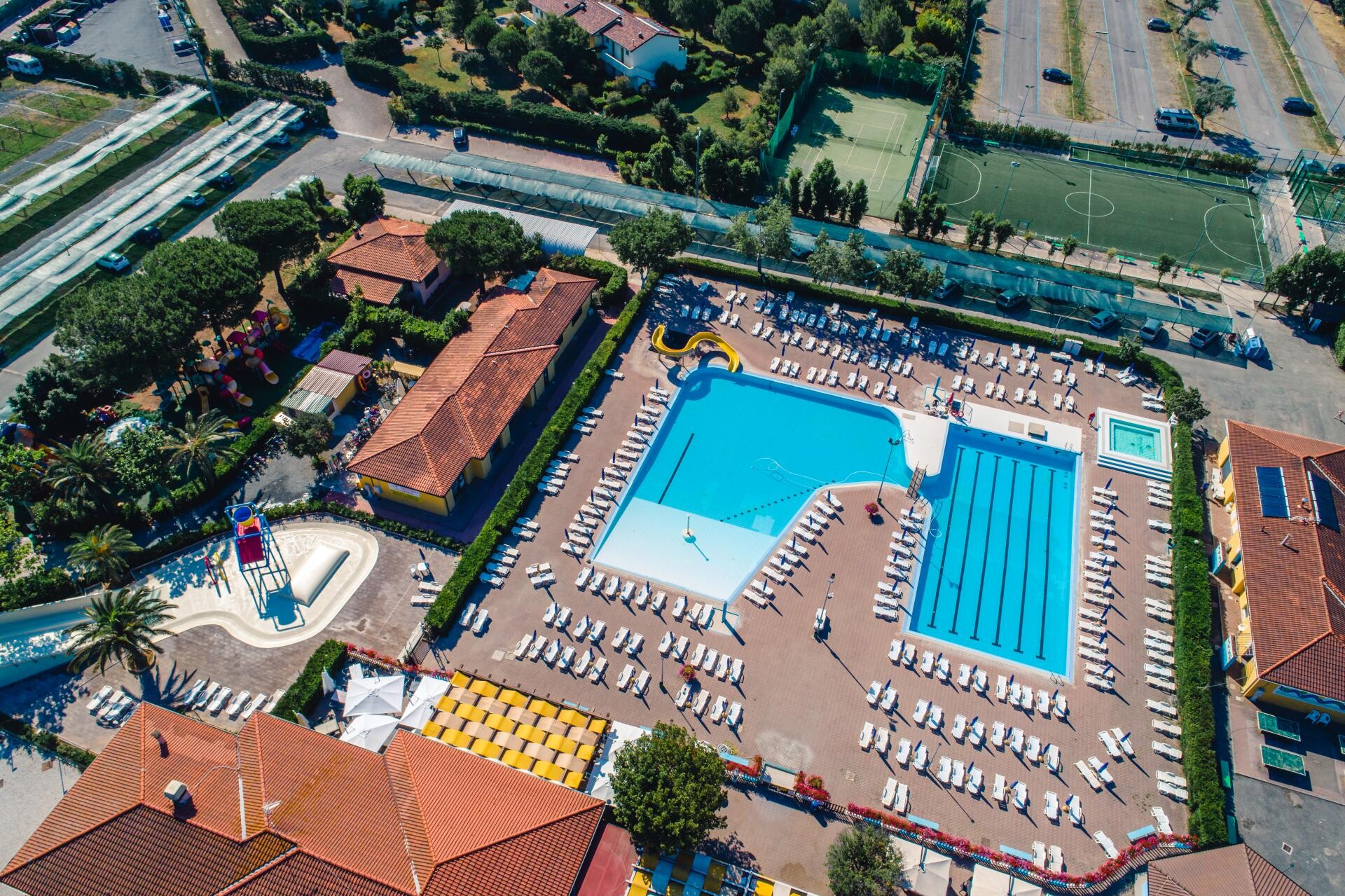 - Piscina con movimento ad onde, idromassaggio, scivoli e fiume rapido