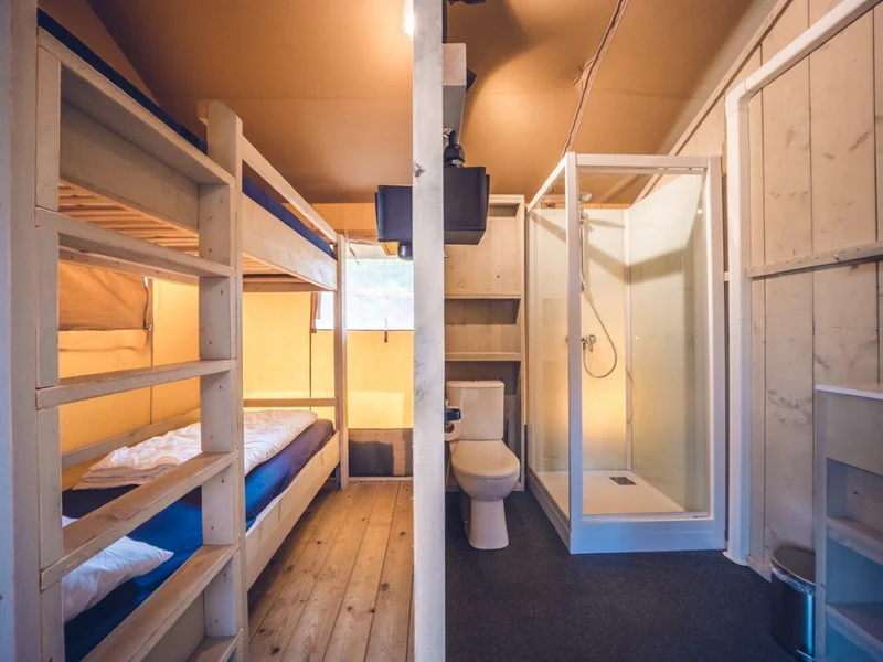 La grande piscina coperta è il luogo ideale per gli amanti del campeggio di lusso. L'acquascivolo Crazy Cone invita gli amanti del divertimento a scatenarsi e a fare una discesa selvaggia prima di tuffarsi nella piscina. L'acqua bassa della piscina per bambini e l'ampia gamma di attrezzature per il divertimento sono ideali per i più piccoli.