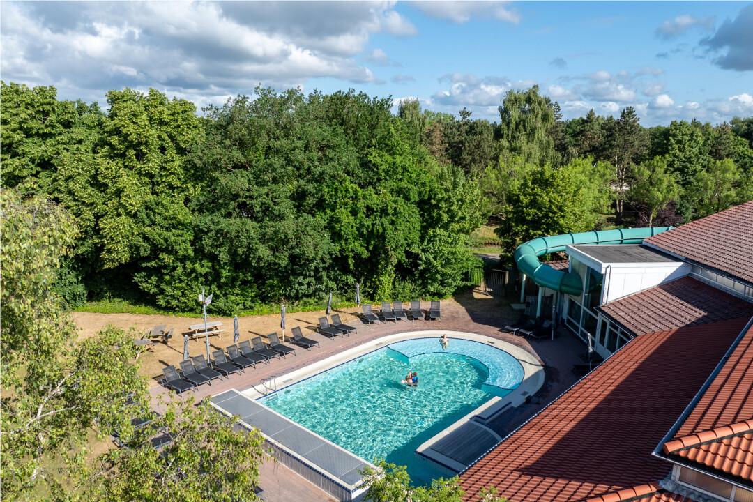 - Piscina all'aperto e parco acquatico al coperto raggiungibili a piedi