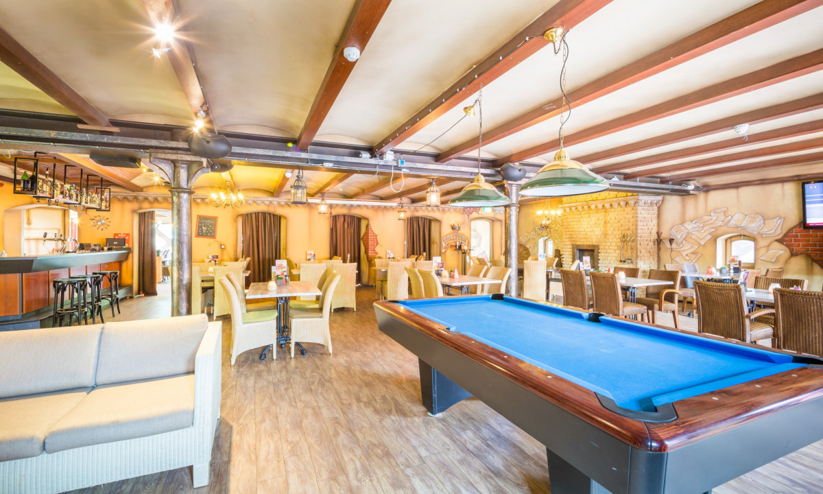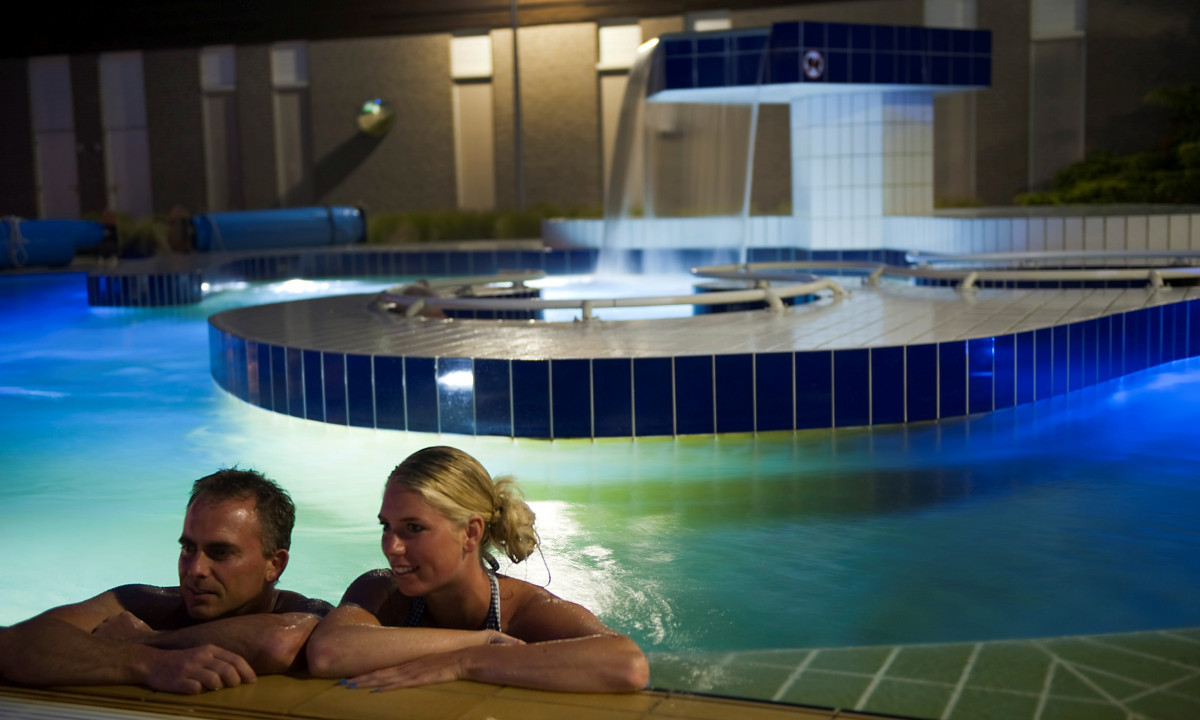 - Piscina all'aperto e grande piscina coperta con piscina a onde e scivolo