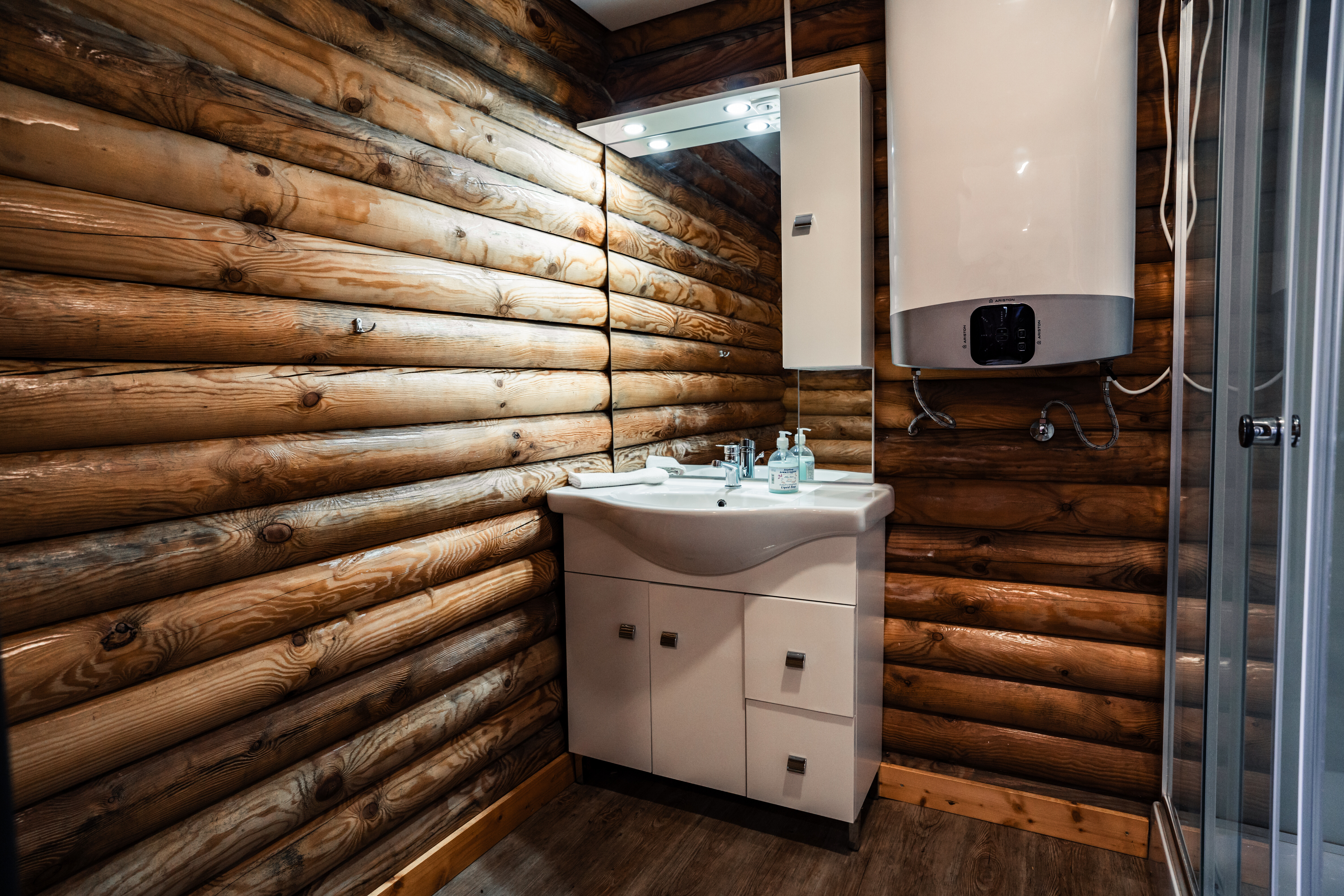 Log cabin with lake view